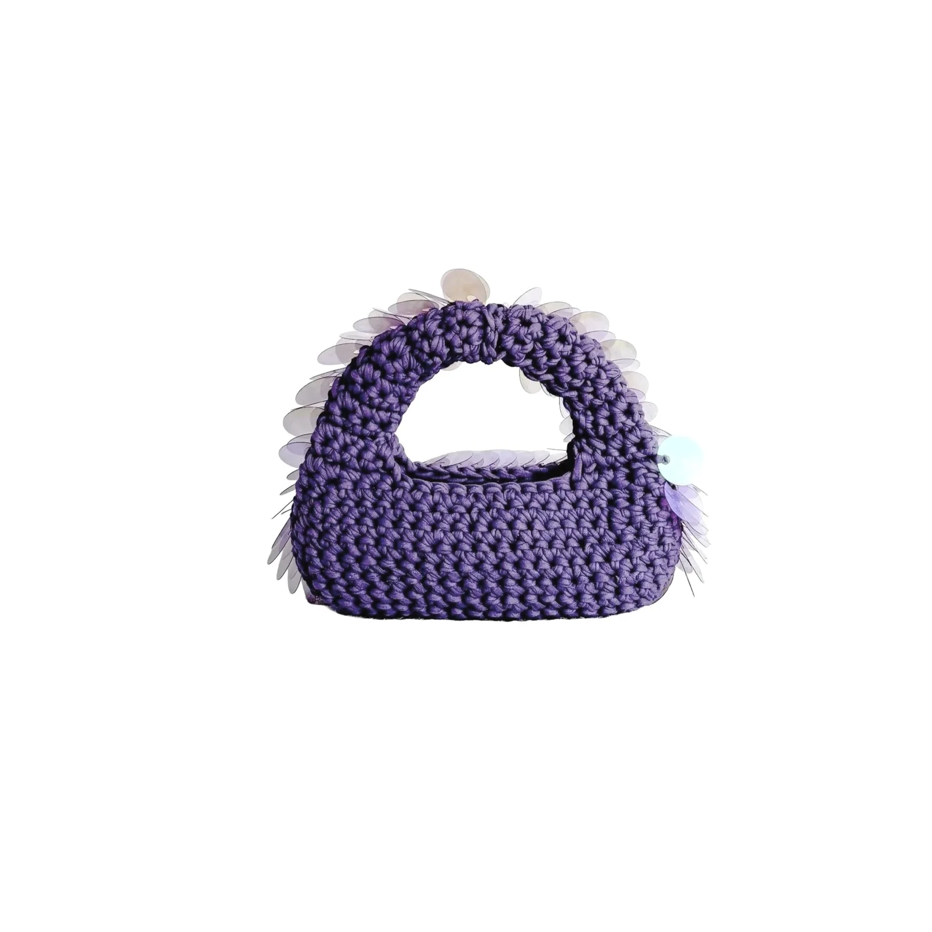 Nos sacs en crochet sont soigneusement confectionnés à la main en France, à partir de coton recyclé issu des fins de rouleaux de l’industrie textile européenne. Chaque pièce est unique, pensée pour conjuguer élégance intemporelle et engagement éco-responsable. Ce modèle unique se distingue par sa face en paillettes irisées, subtilement positionnées sur un seul côté du sac. Un choix esthétique, bien sûr, mais aussi pratique : cela évite les frottements désagréables contre les vêtements ou la peau, et assure un port confortable au quotidien, tout en ajoutant une touche lumineuse et festive. Ce mini modèle est parfait pour emporter l'essentiel lors d'une sortie légère, sans être encombré(e).